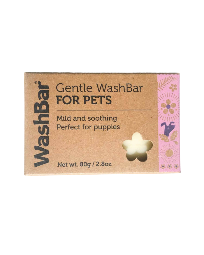 WashBar Gentle on hellävarainen koiran shampoo saippuamuodossa, joka sopii koirille, joilla on herkkä iho, tai pentujen ensimmäiseen kylpyyn. Saippua on hellävarainen ja mieto koiran turkille ja iholle. 80 g saippuaa (vastaa 450 ml nestemäistä shampoota).
